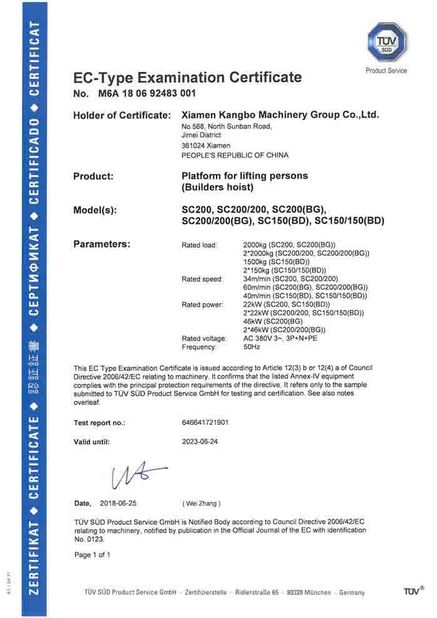 KANGBOの機械類のグループの品質管理部は生産の全プロセスを監察するために品質管理のエンジニアおよび技術者を含んでいます。すべてのマスト セクションに、ドライブ装置および構造のエレベーター車に質をたどる独特な数があります。